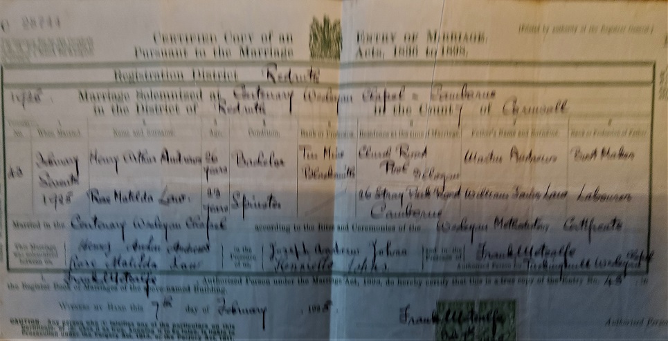 25/02/1925 Rose and Arthur Andrew Marriage Certificate (pdf)
