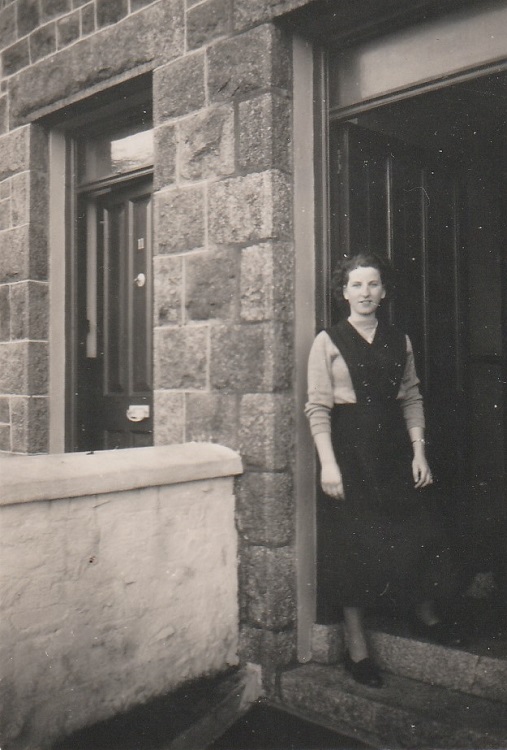 Jean outside front door of 13 Church Road, Pool - approx.1947