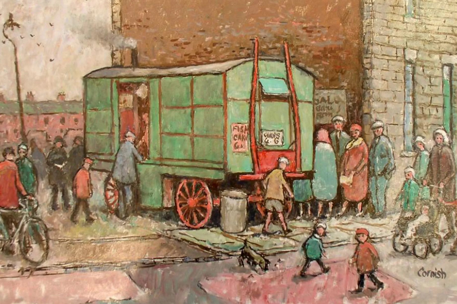 Norman Cornish (1919-2014) Berriman's Fish and Chip Van. Gemini Collection of Mining Art, Bishop Auckland