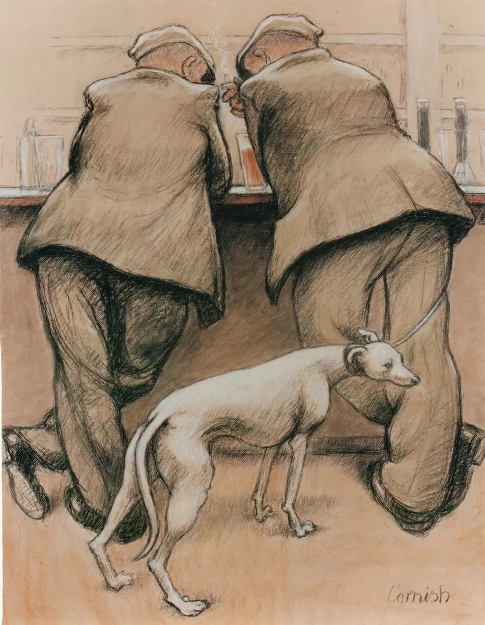 Norman Cornish (1919-2014) Two Men at the Bar with Dog. Private collection