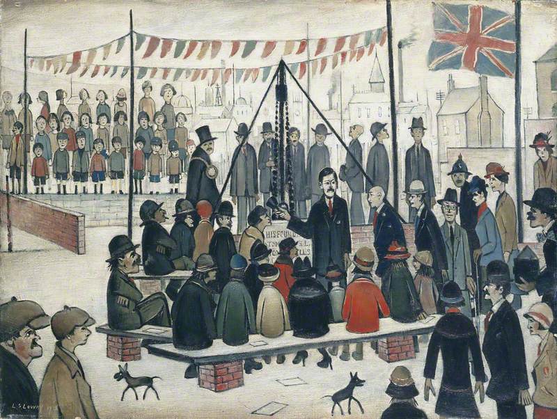Leslie Stephen Lowry (1887-1976): Laying a Foundation Stone (1936). Manchester Art Gallery