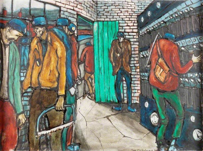 Tom McGuinness (1926-2006): Miners' Lamp Room (1962). Shipley Art Gallery, Gateshead