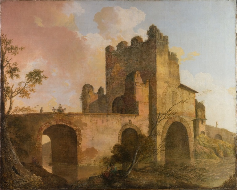 Joseph Wright of Derby (1734-97): A View of the Ponte Nomentano, near Rome (undated. Derby Museum and Art Gallery