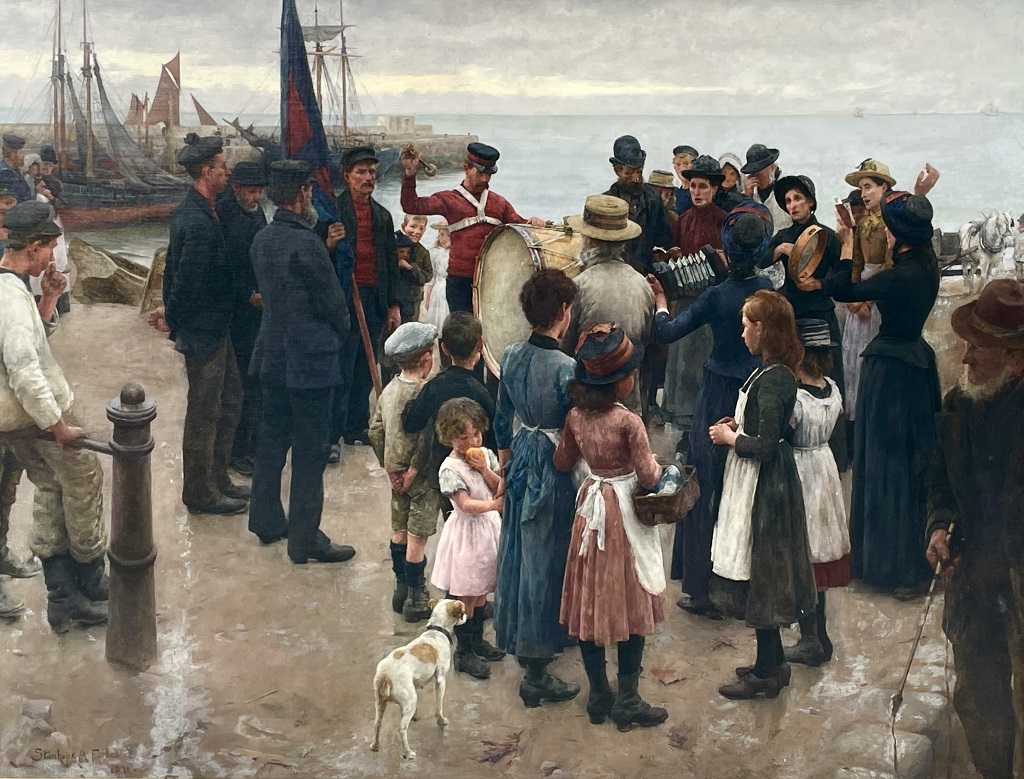 Stanhope Forbes (1857-1947): Soldiers and Sailors; Salvation Army Holding a Service in a Fishing Village (1891)