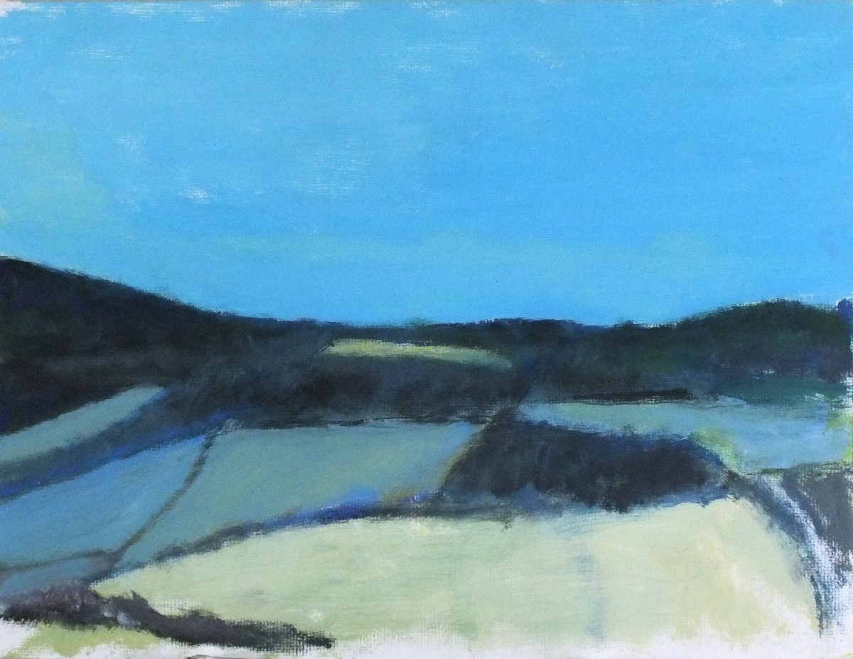 Bob Bourne (1931-2021): Cornish Rolling Landscape with Blue Sky