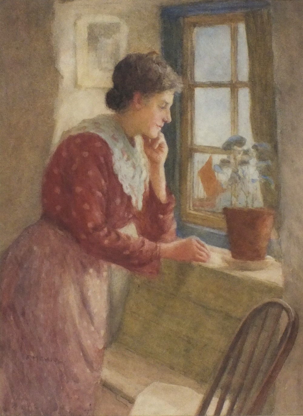 Frederick McNamara Evans (1859-1929): Young Newlyn Fisherwife at the Window