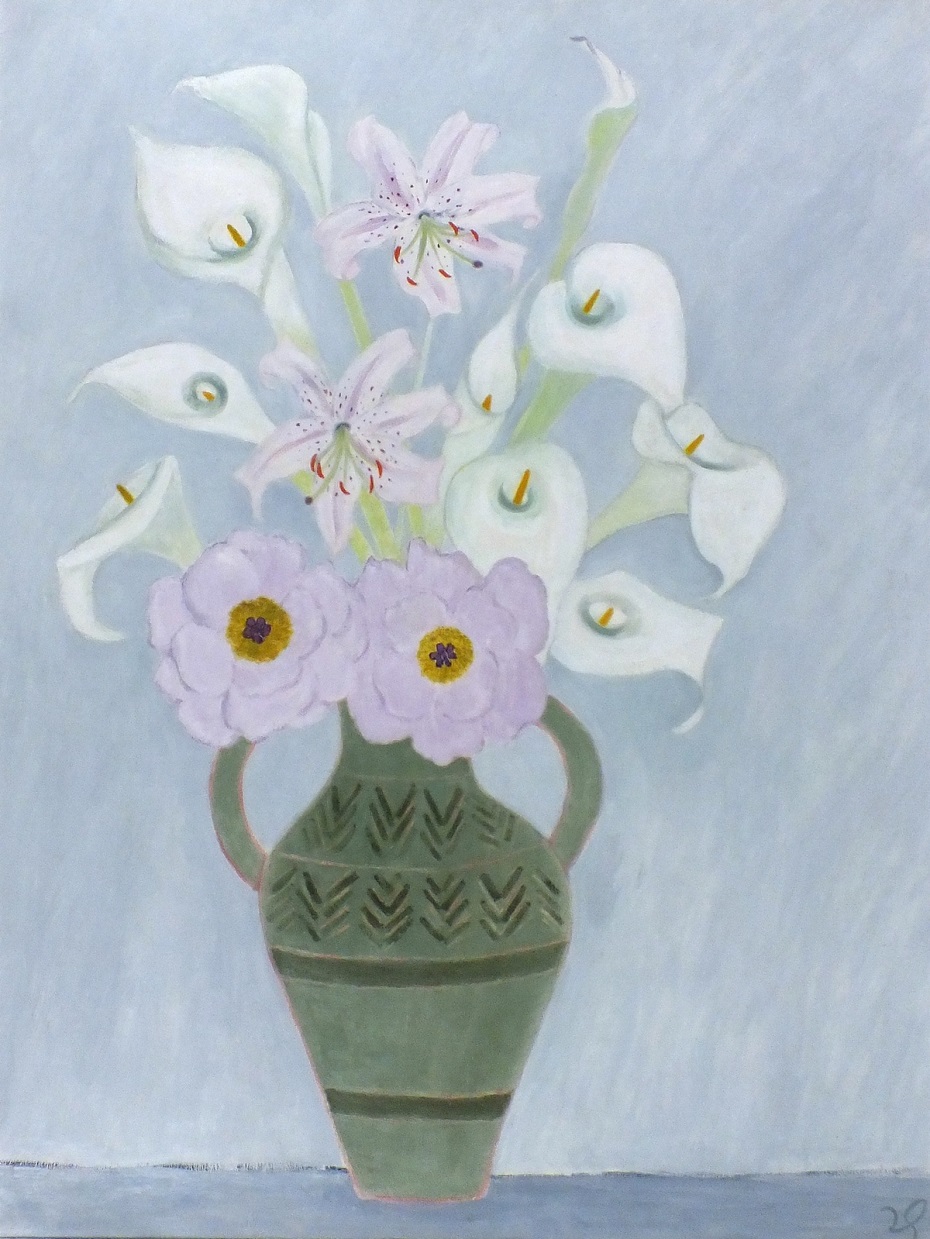 Joan Gillchrest (1918-2008): Lilies in a twin handled amphora vase (Undated). Private collection