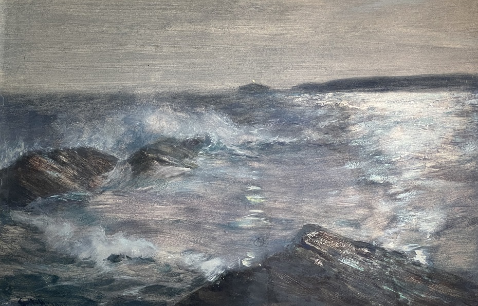 Charles Napier Hemy (1841-1917): Godrevy Lighthouse Through Stormy Seas, St Ives Bay (1900)