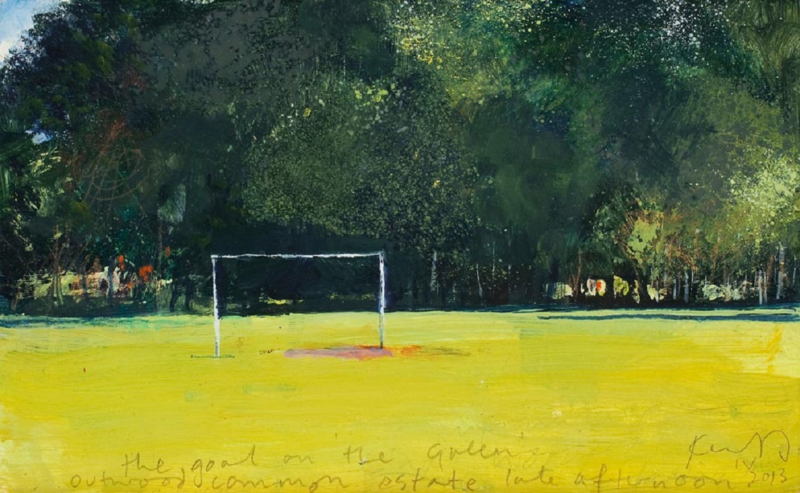 Kurt Jackson (1961-): The goal on The Green, Outwood Common Estate, late afternoon (2013). Private collection