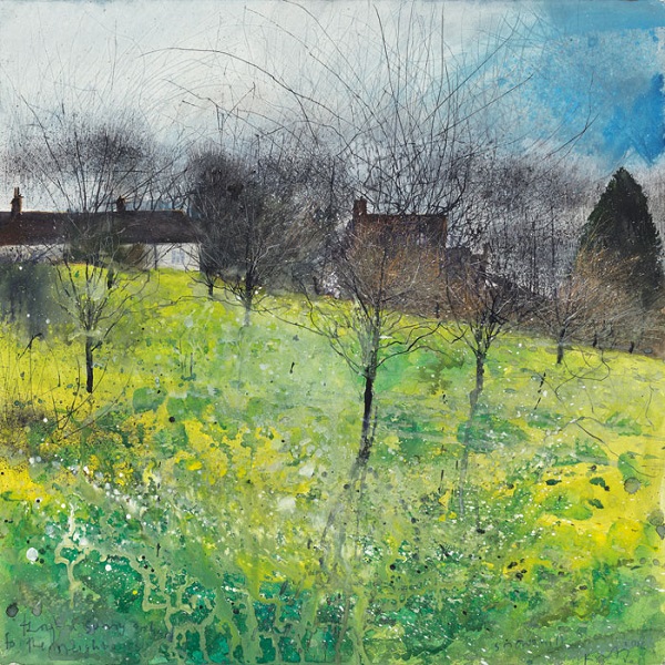 Kurt Jackson (1961-): Through a sunny orchard to the neighbours (2016). Private collection
