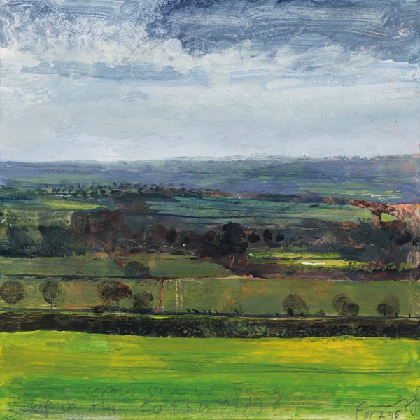 Kurt Jackson (1961-): Crow scarer bang, up in the Cotswolds (2016). Private collection