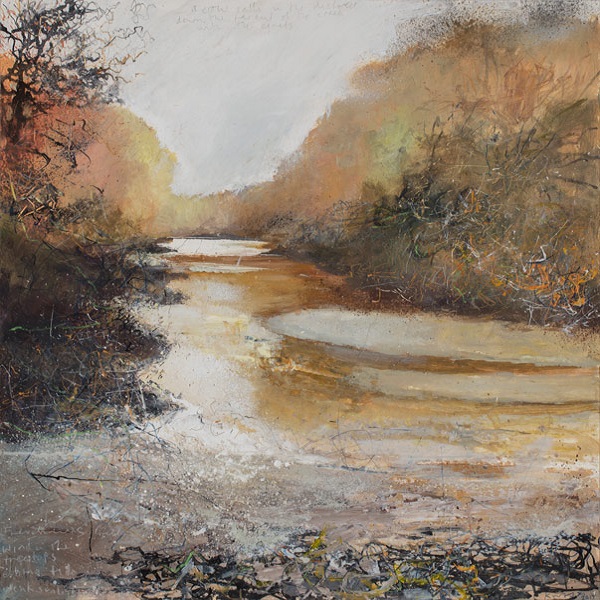 Kurt Jackson (1961-): Frenchman’s Creek wind in the treetops, ebbing tide, weak sunlight (2014). Private collection
