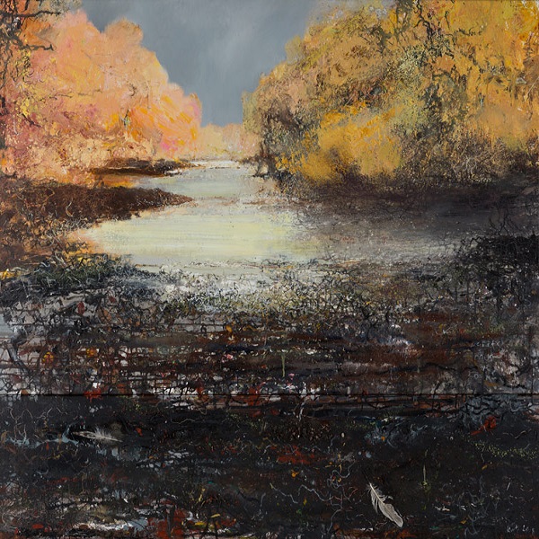 Kurt Jackson (1961-): Egrets, mud and oaks (2015). Private collection
