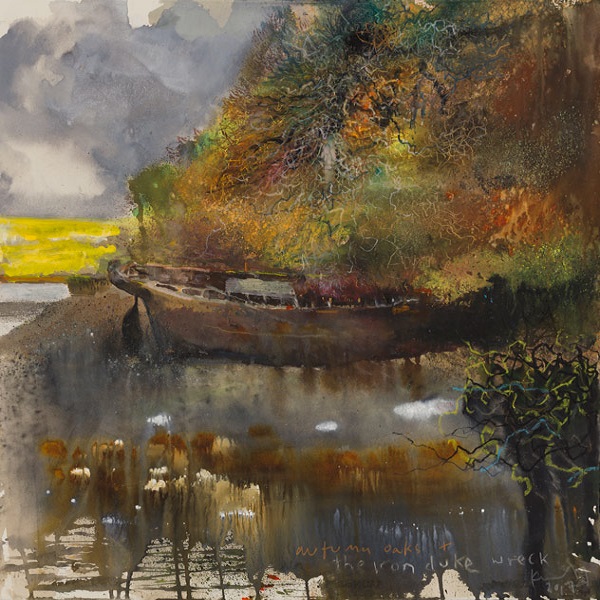 Kurt Jackson (1961-): Autumn oaks and the Iron Duke wreck (2017). Private collection