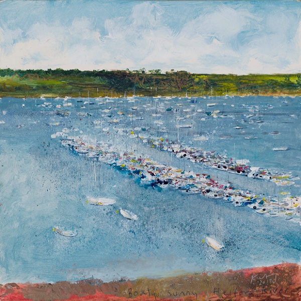 Kurt Jackson (1961-): Boaty, sunny Helford River (2018). Private collection