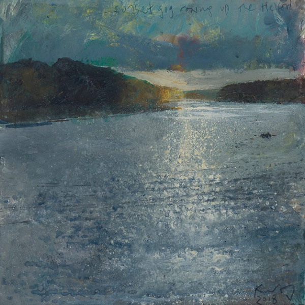 Kurt Jackson (1961-): Sunset gig rowing up the Helford (2018). Private collection