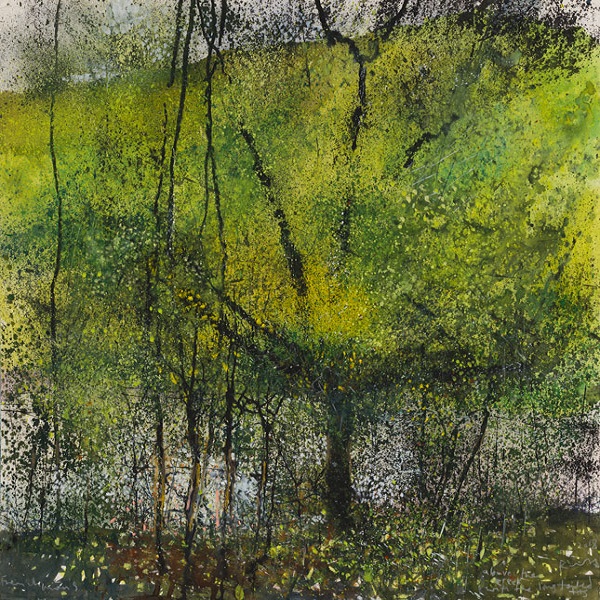 Kurt Jackson (1961-): Above the creek with the longtailed tits (2018). Private collection
