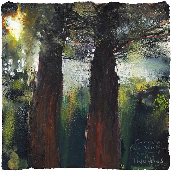 Kurt Jackson (1961-): Cornish sun sinking behind the two yews (2013)