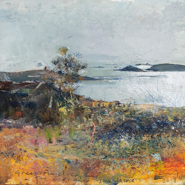 Kurt Jackson (1961-): Greenfinch calling in the morning sunshine (2018)