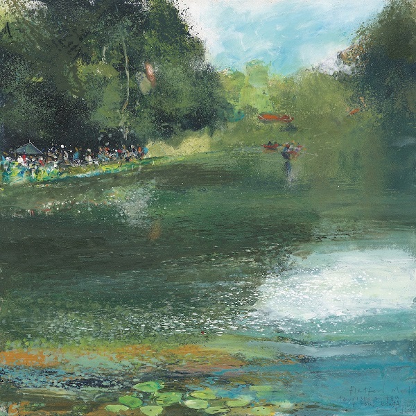 Kurt Jackson (1961-): Flatford Mill tourists and tea and row boats (2017). Private collection