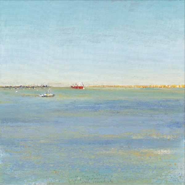 Kurt Jackson (1961-): Into the estuary, bright morning from Harwich (2018). Private collection