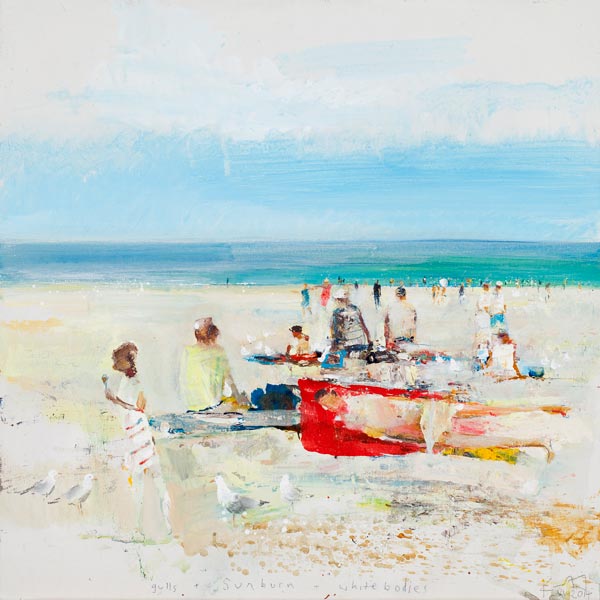 Kurt Jackson (1961-): Gulls and sunburn and white bodies (2014). Private collection