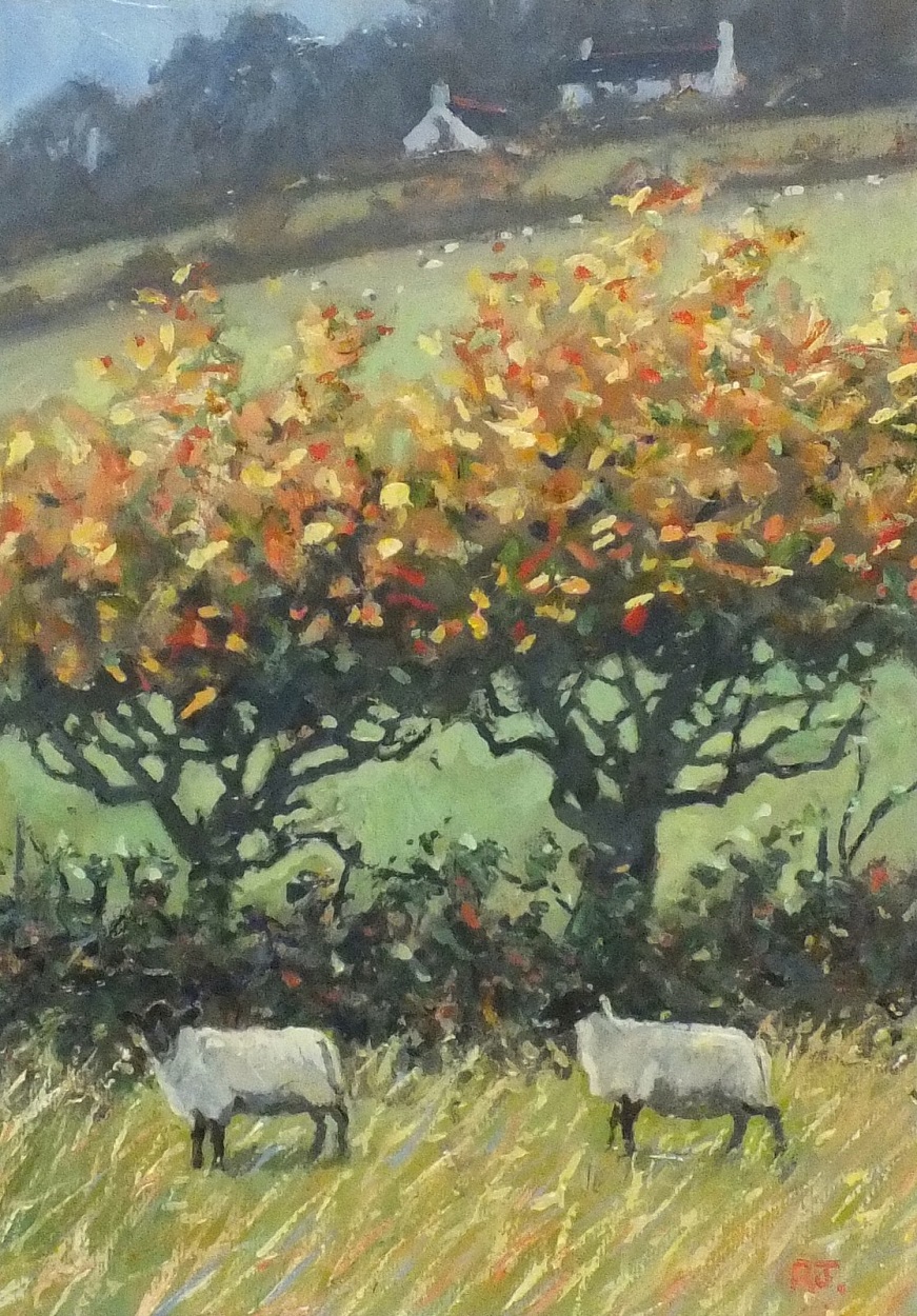 Robert Jones (1943-): Autumn Trees & Sheep, Vale of Ewyas II (2008)