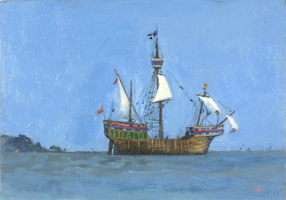 Robert Jones (1943-): ‘Matthew' in the Carrick Roads, Galleon under Sail