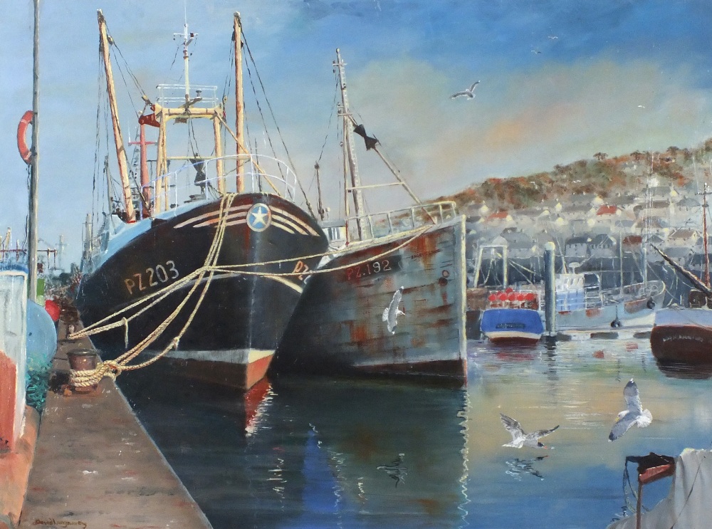 David Langsworthy (1944-): A Morsel of Fish, Newlyn Harbour