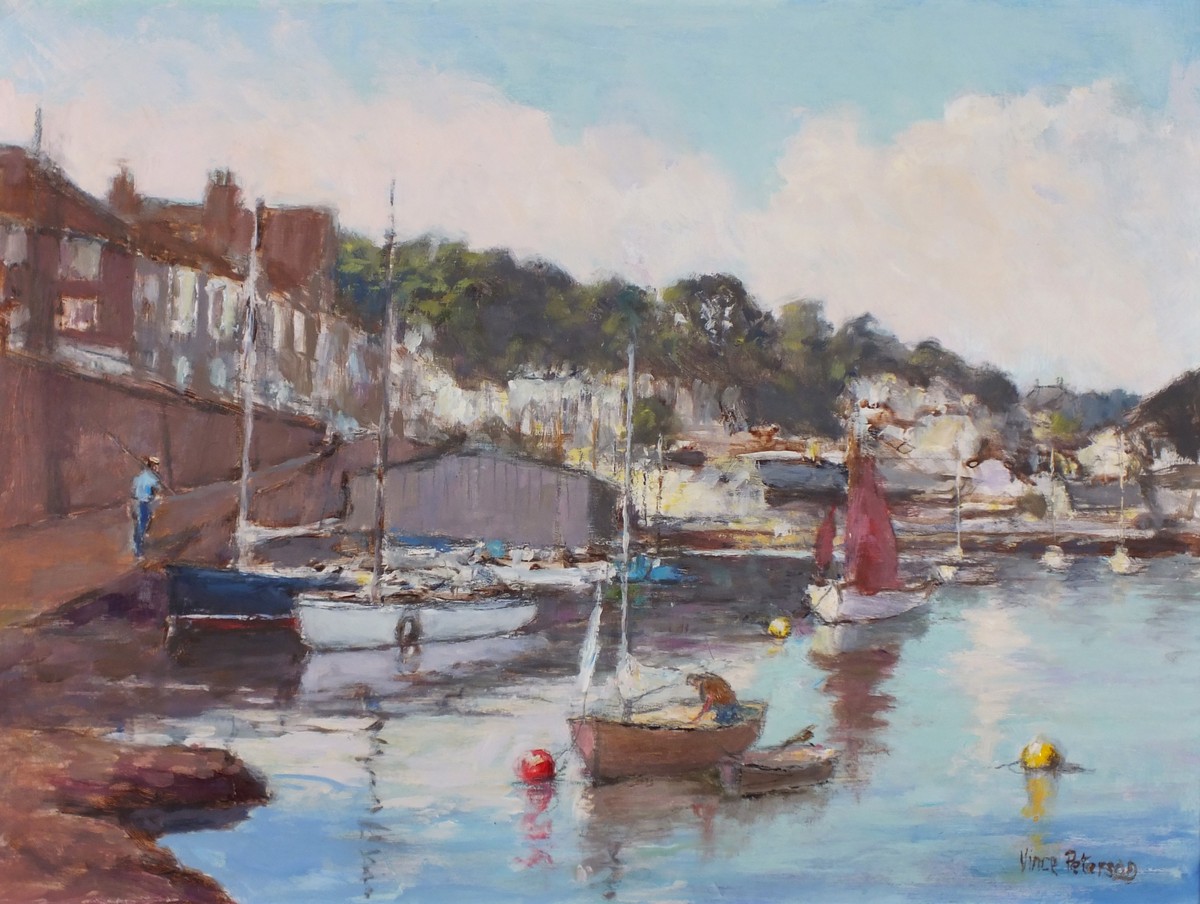 Vince Peterson (1945-): Old Harbour, Newlyn: Preparing to Sail