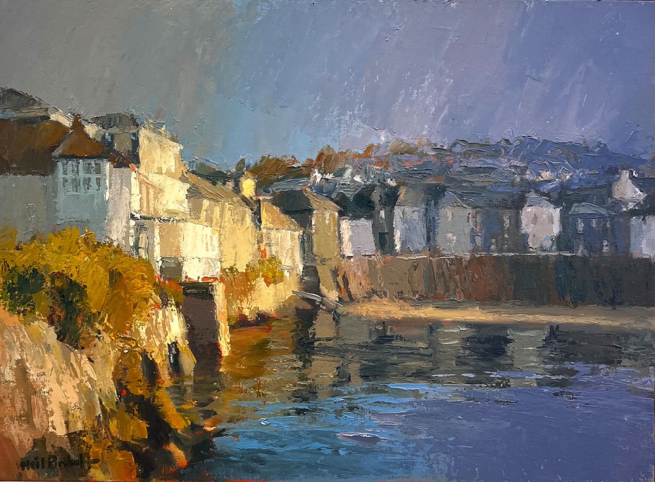 Neil Pinkett (1958-): Bright Sun on Mousehole Harbour