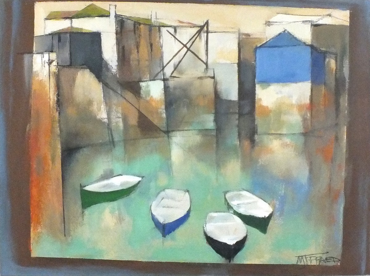 Michael Praed (1941-): Harbour Shapes, Looking through no.1
