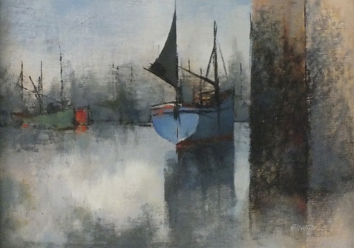 Michael Praed (1941-): Harbour with Fishing Vessels Low Tide