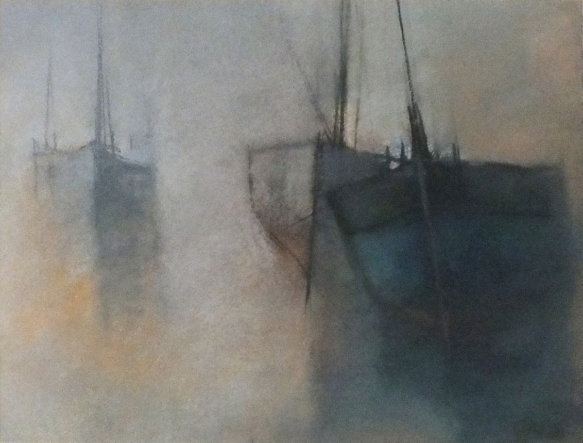 Michael Praed (1941-): Moored and Beached Vessels in the Mist