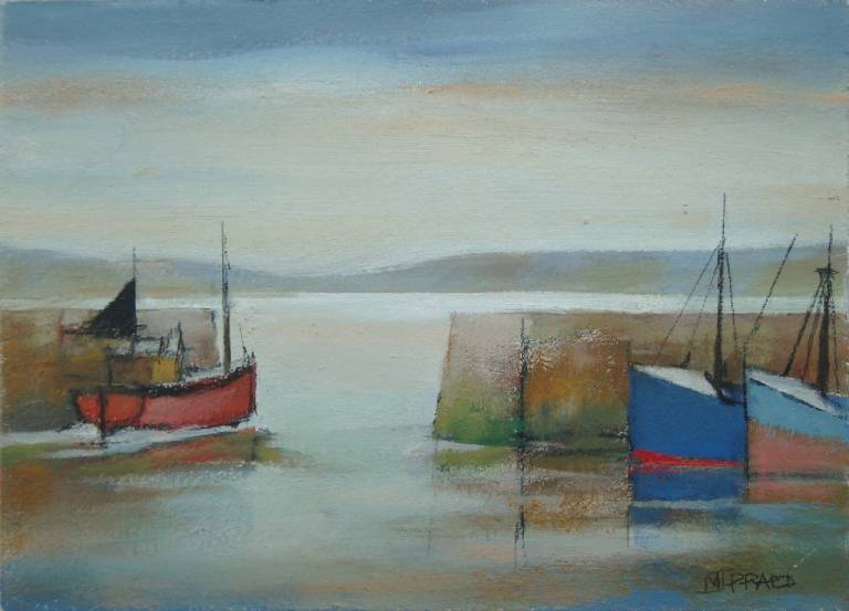 Michael Praed (1941-): The Red Craft Leaving Harbour.