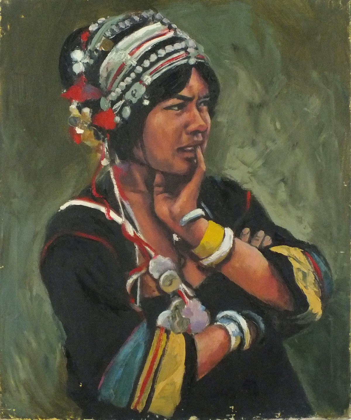 Joan Riley (1920-2015): South American Woman in Beaded Head Dress