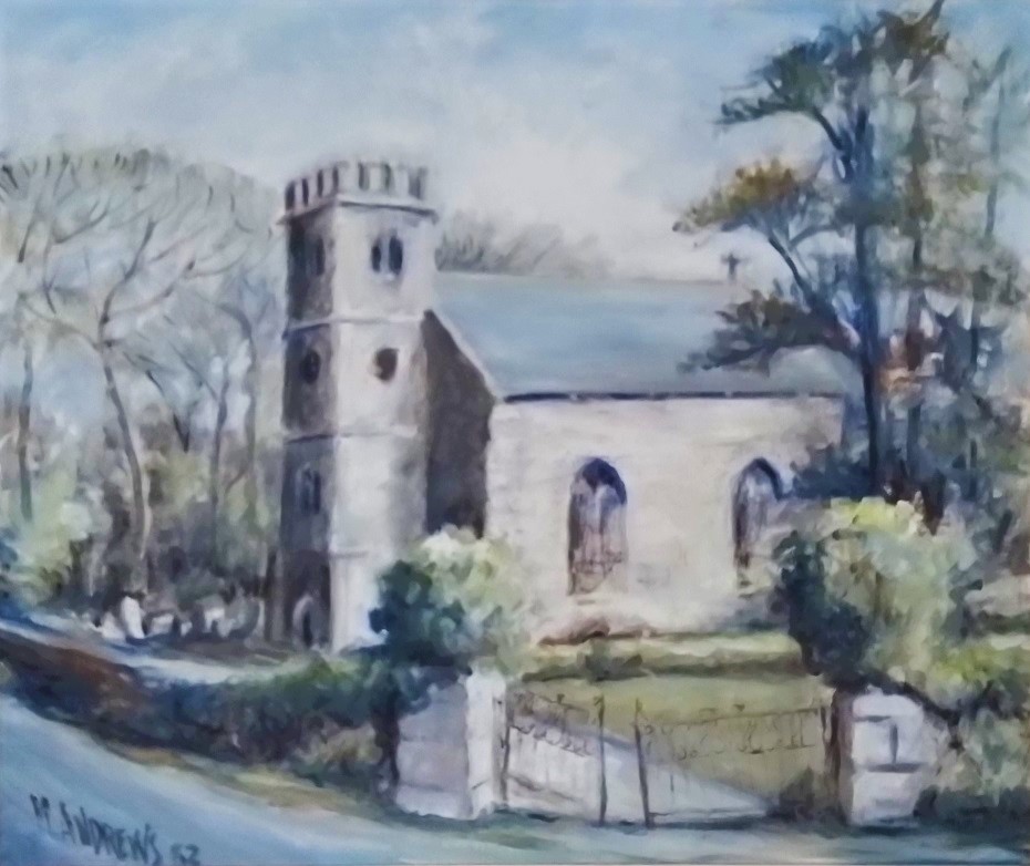 Mary Andrews, from Hilton Head Island, South Carolina, USA was the wife of Clifford Andrews, son of Joseph Andrews and first cousin of my mother Jean George (née Andrew). In the summer of 1982 she visited the UK and stayed at my parents' home, 39 Fore Street, Pool. As a token of appreciation for their hospitality, she painted this picture of Trevenson Church. It was displayed in their lounge until my mother's death in 2020 and and is now on the wall of the lounge at my home in Camborne