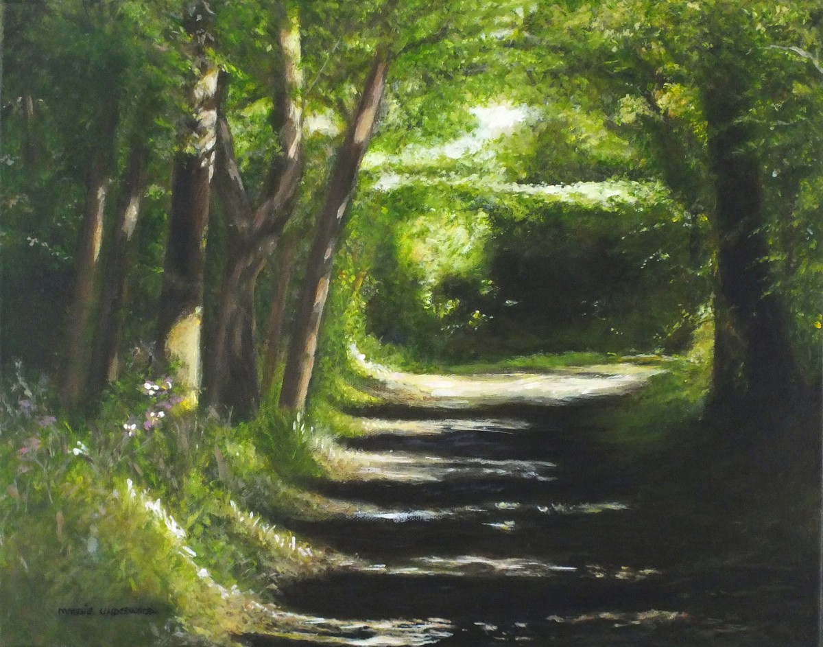 Maggie Underwood (1945-): Sunlit walk at Godolphin
