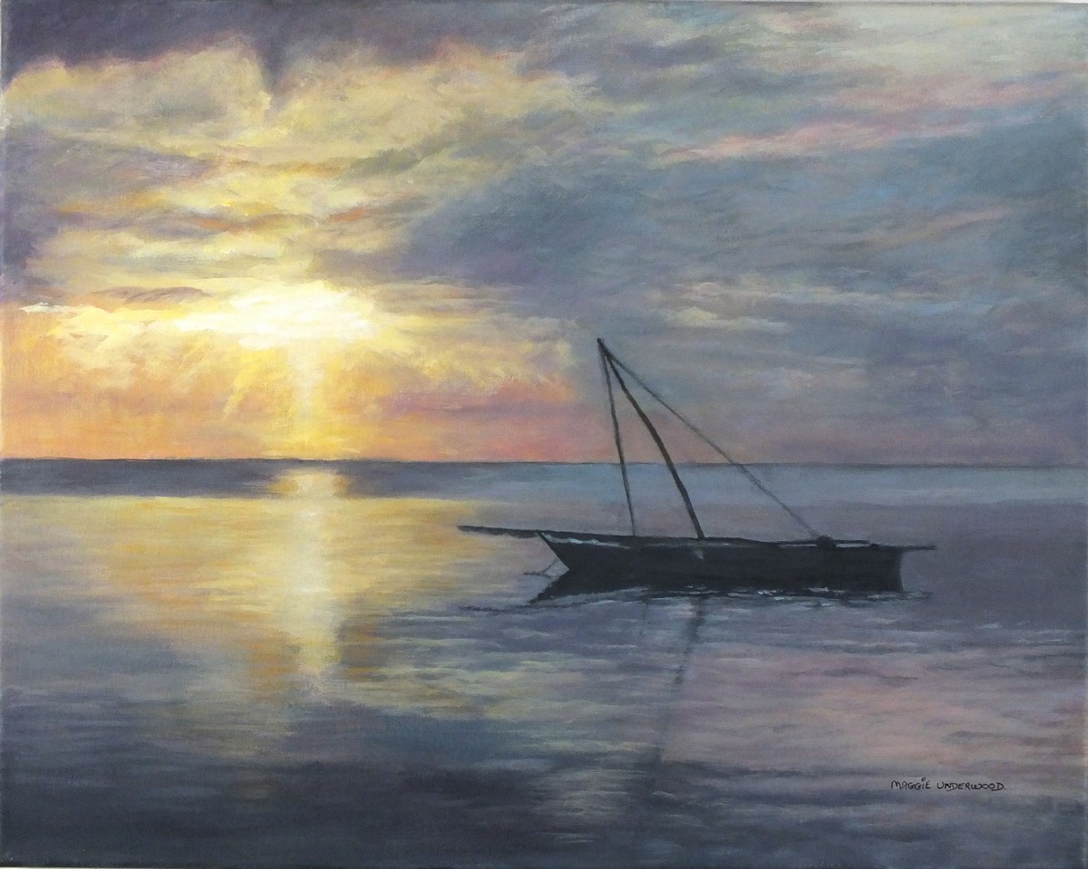Maggie Underwood (1947-): Sunset over a Tranquil Sea