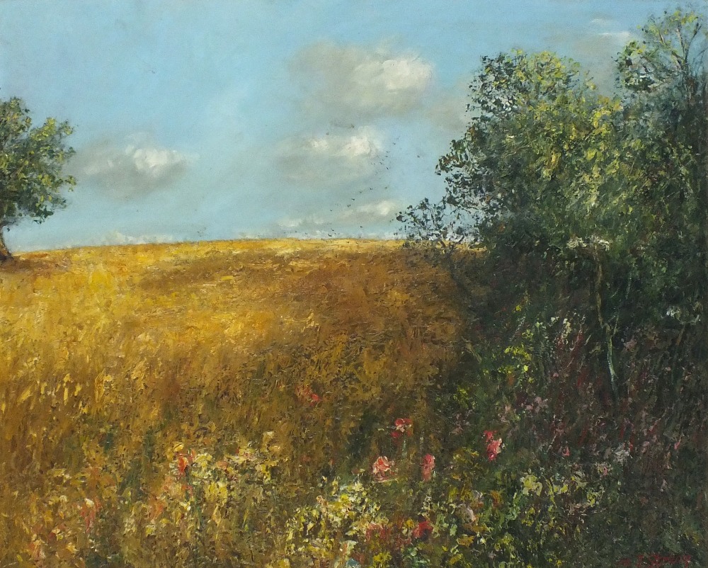 Michael Strang (1942-2021): At the Edge of a Cornfield, Summer Landscape (1980)