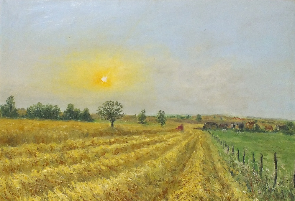 Michael Strang (1942-2021): Harvesting, Combine Harvester at Work in a Cornfield (1981)