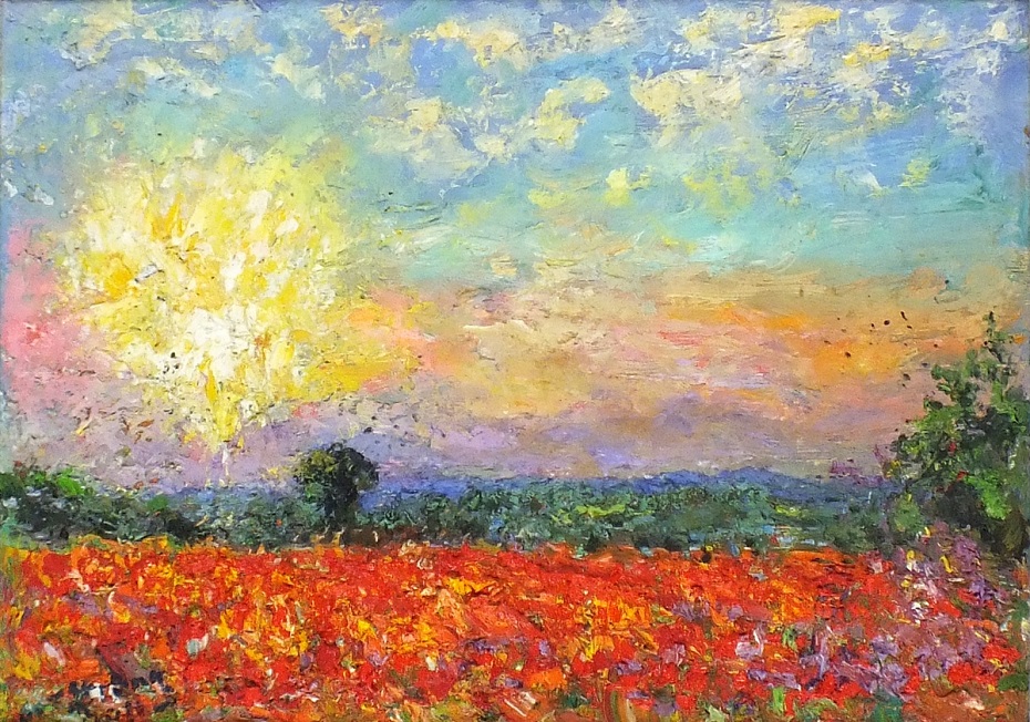 Michael Strang (1942-2021): Sunrise, Poppy Field at Whitecross towards Godolphin Hill (2011)