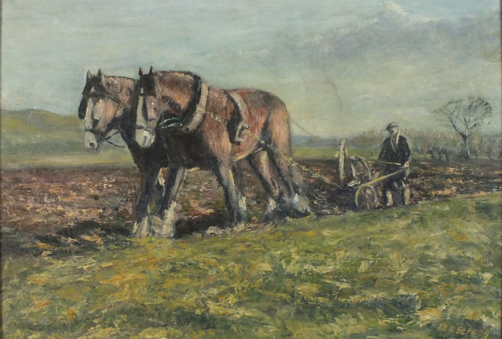 Michael Strang (1942-2021): Ploughing, Pair of Heavy Horses