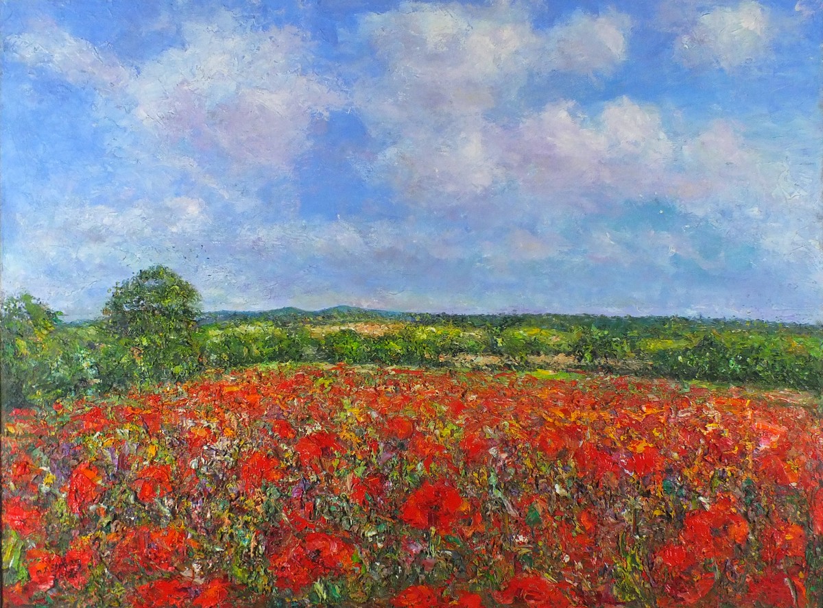 Michael Strang (1942-2021): Symphony in Red & Gold, Poppy Field towards Godolphin Hill from Whitecross