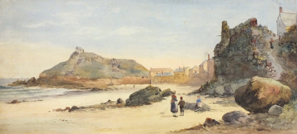 John C Uren (1845-1932): Figures on Porthmeor Beach, St Ives
