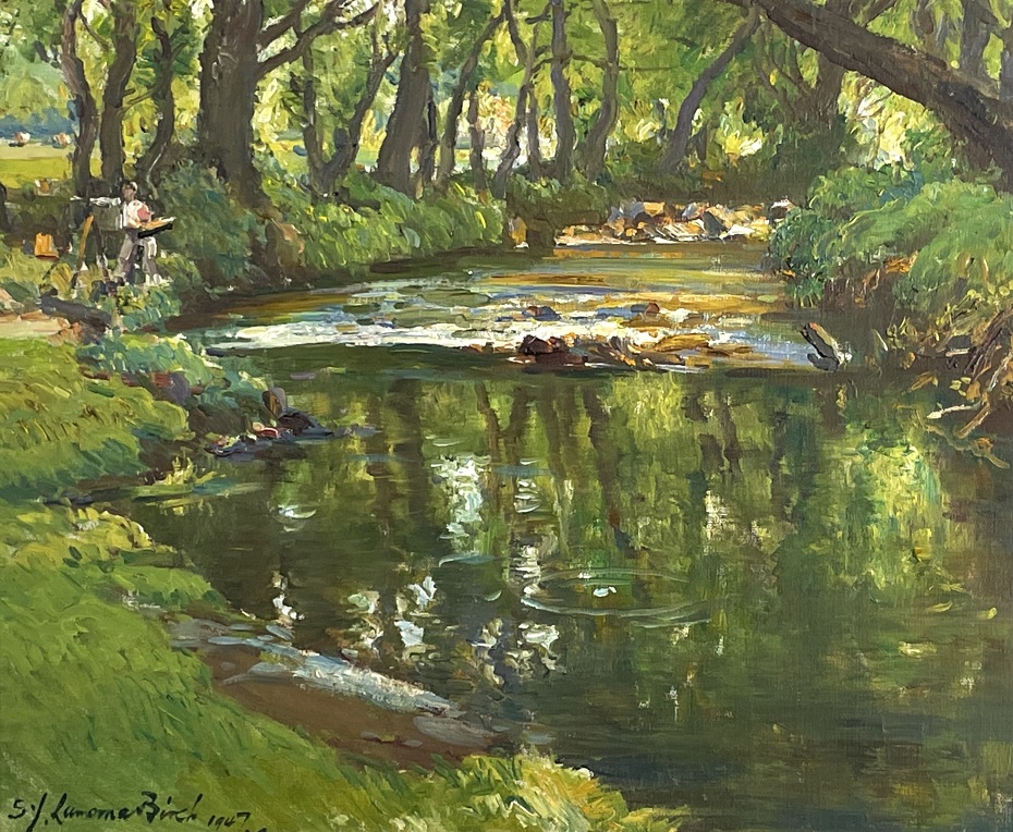 Lamorna Birch (1869-1955): Lamorna Stream with an Artist on the Riverbank (1947). Private collection