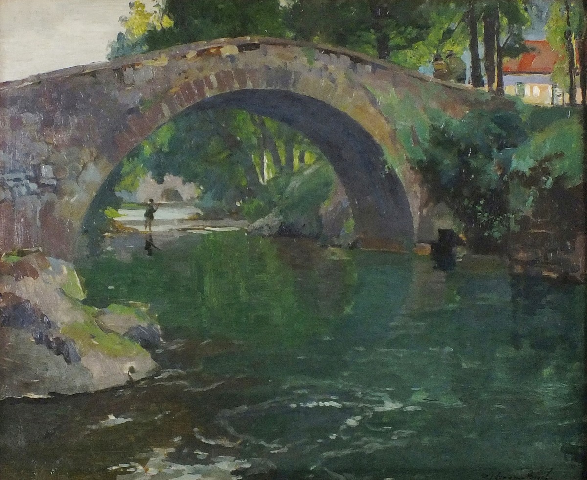 Lamorna Birch (1869-1955): Fisherman by a Stone Bridge (Undated). Private collection