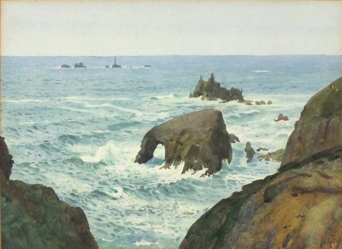 Thomas Cooper Gotch (1854-1931): Longships Lighthouse & Enys Dodnam Arch, Lands End