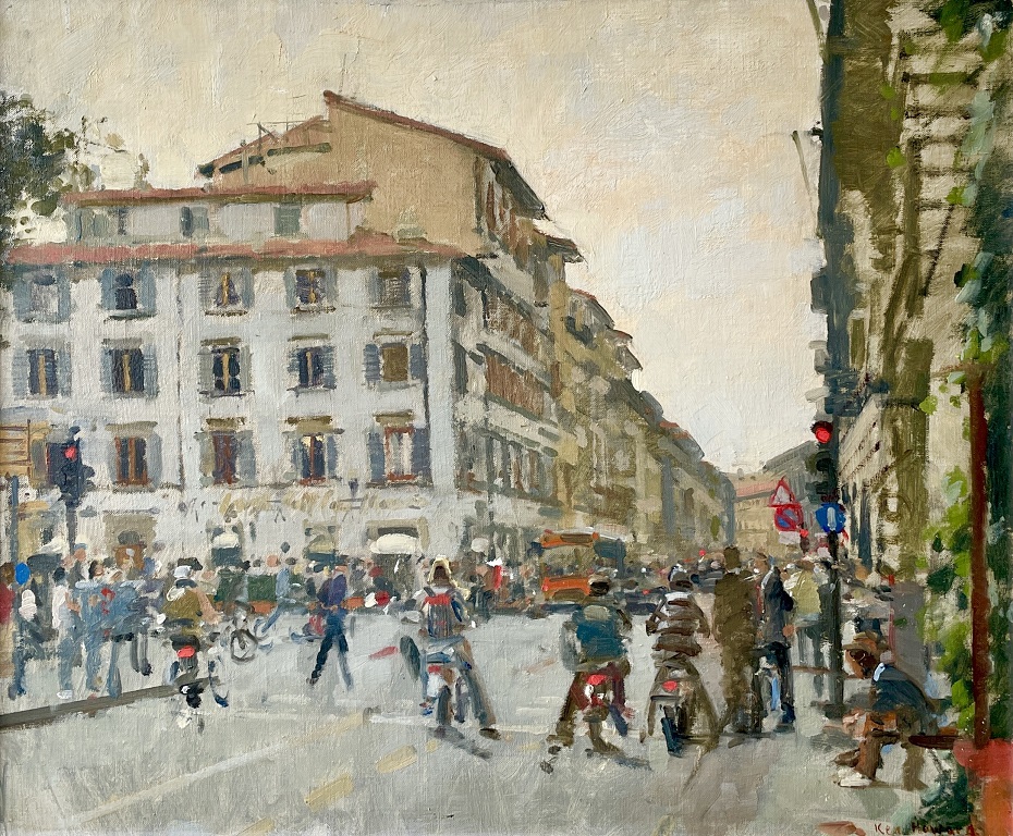 Ken Howard (1932-2022): Busy Street Scene, Via Cavour, Florence (Undated)