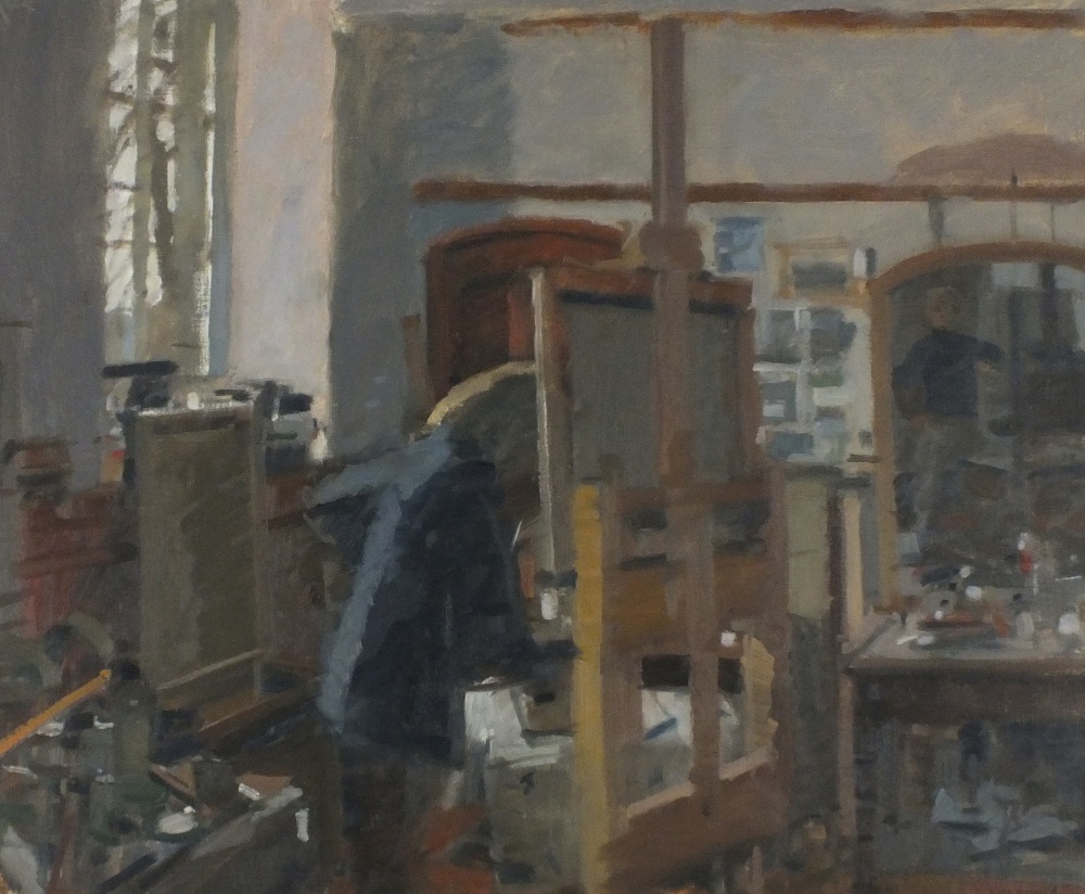 Ken Howard (1932-2022): The Artist at Work at his Easel in his Mousehole Studio (Undated) (Undated)